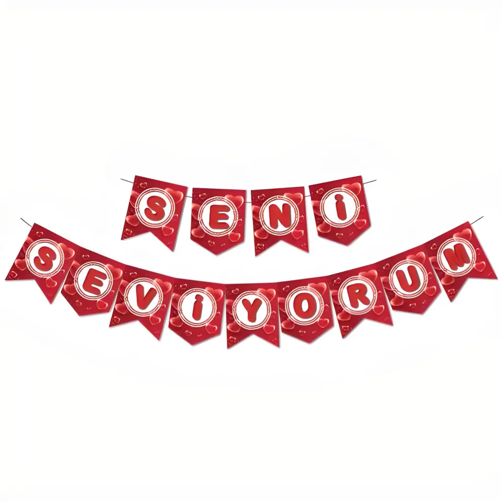 Seni Seviyorum Yazılı Kırmızı Renk Banner Sevgili Sürpriz Süslemesi 190 cm