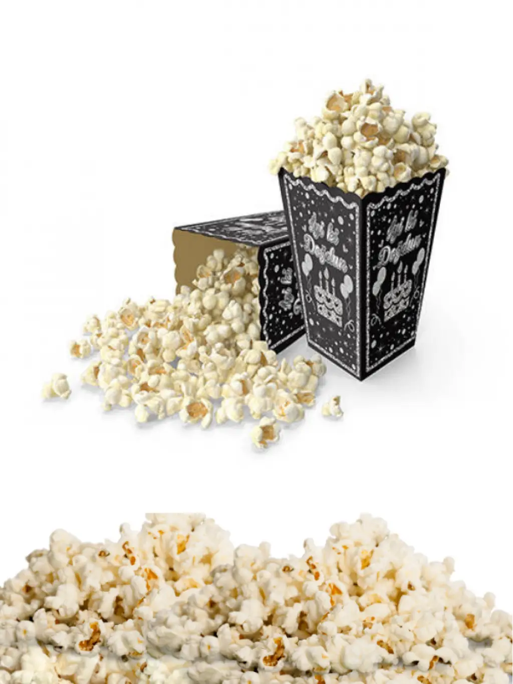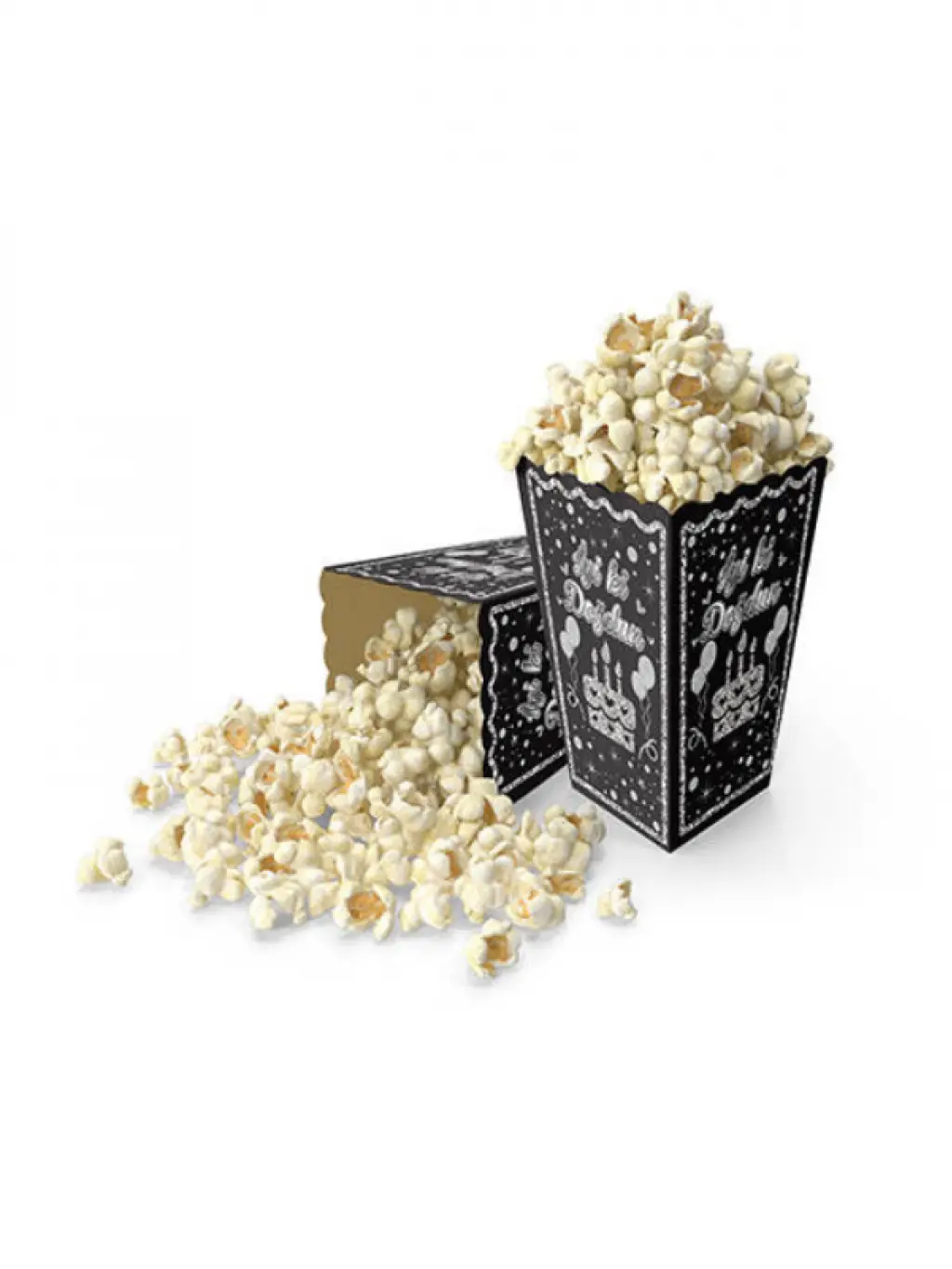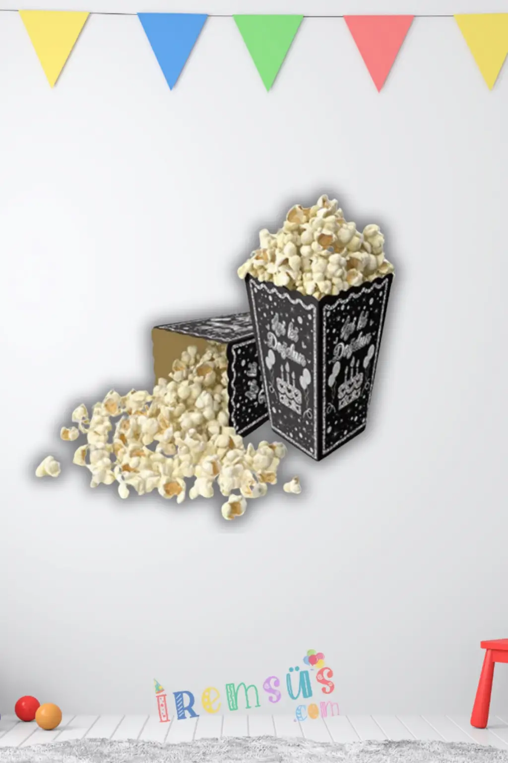 Siyah Gümüş İyi ki Doğdun Konsept Mısır Kutusu Popcorn 8 li Siyah Tema Masa Üstü Süslemesi