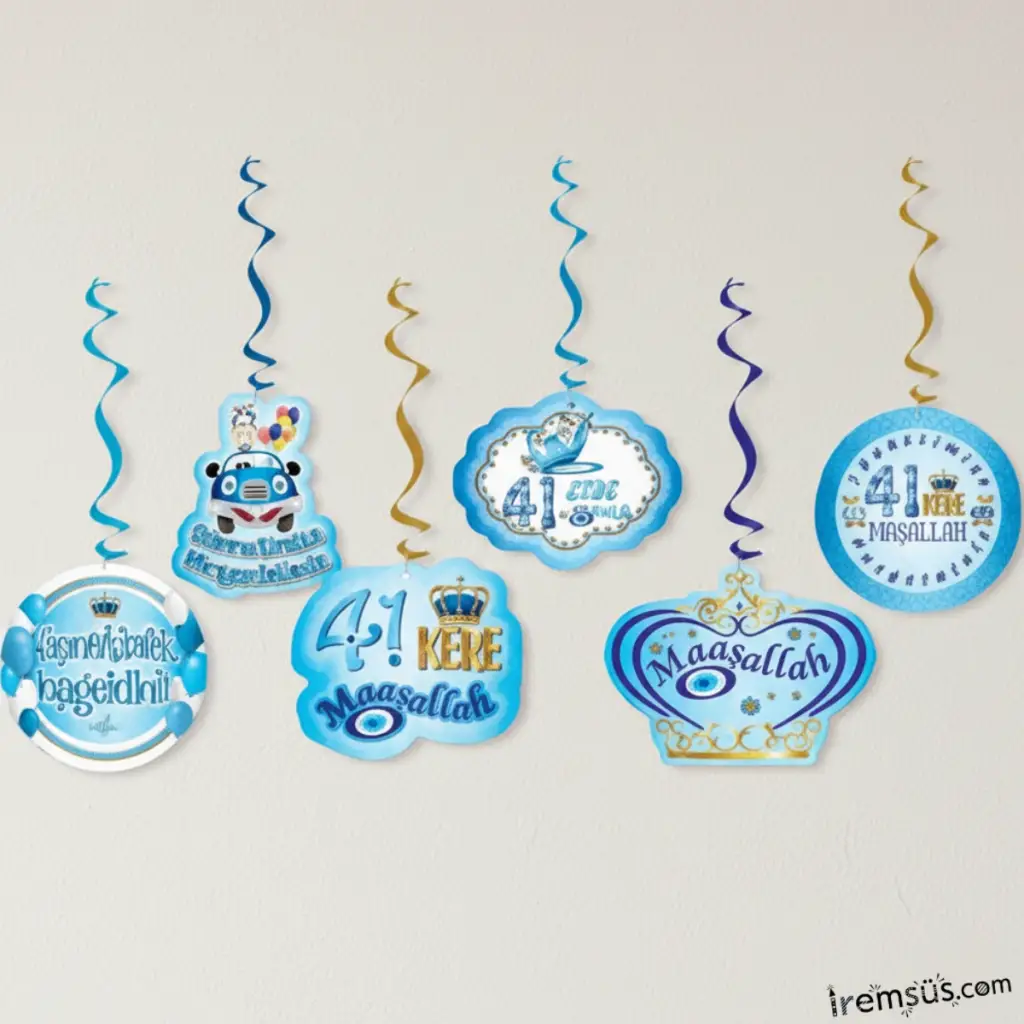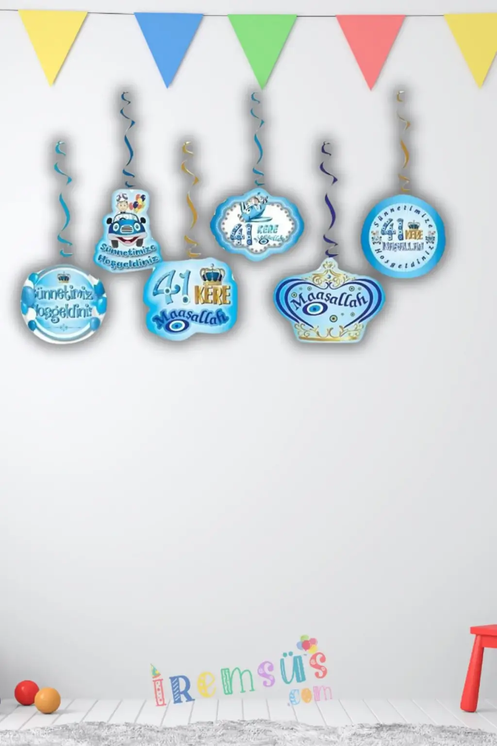 Sünnet Kutlama Süslemesi Tavandan Sarkıt Süs 6 lı Sünnet Odası Süslemesi