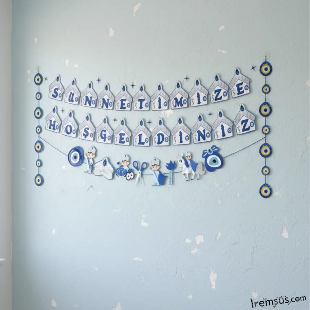 Sünnet Kutlama Dekoratif Nazar Boncuklu Karton Süsleme Sünnet Düğünü ve Oda Süslemesi