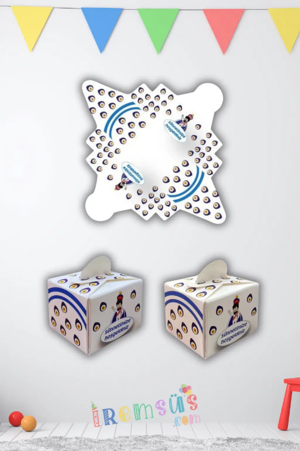 Sünnet Kutlama Dekoratif Nazar Boncuklu Karton Süsleme Sünnet Düğünü ve Oda Süslemesi