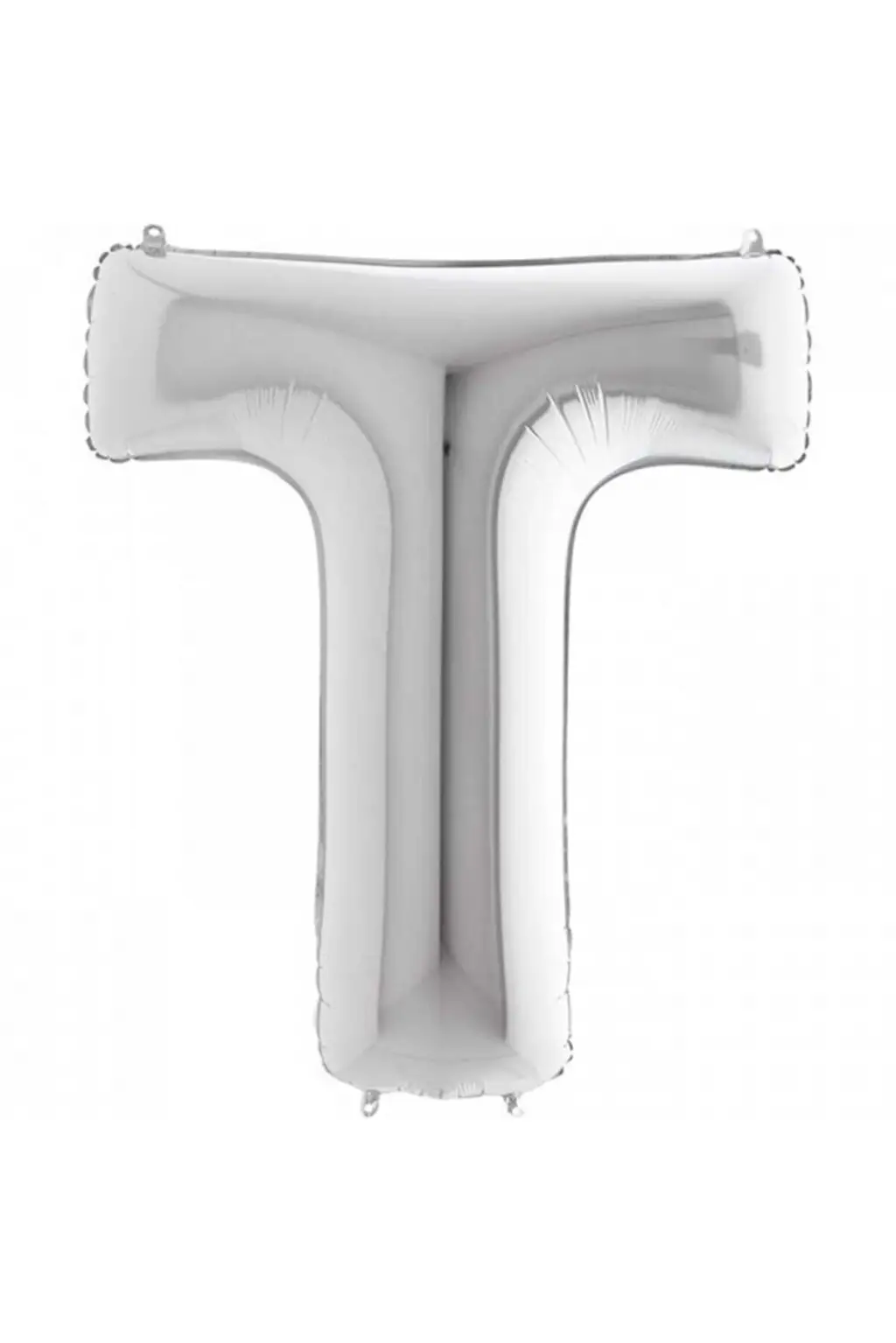 T Harfi Doğum Günü Gümüş Renk Folyo Helyum Balon 34" 76 Cm T Harf Folyo Balon Silver Konsept