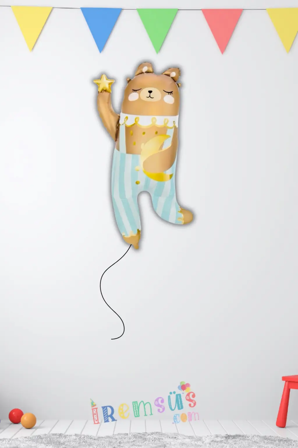 Teddy Ayı Figür Folyo Helyum Balon 79 Cm Ayıcık Figür Mavi Tema Süsleme Balonu
