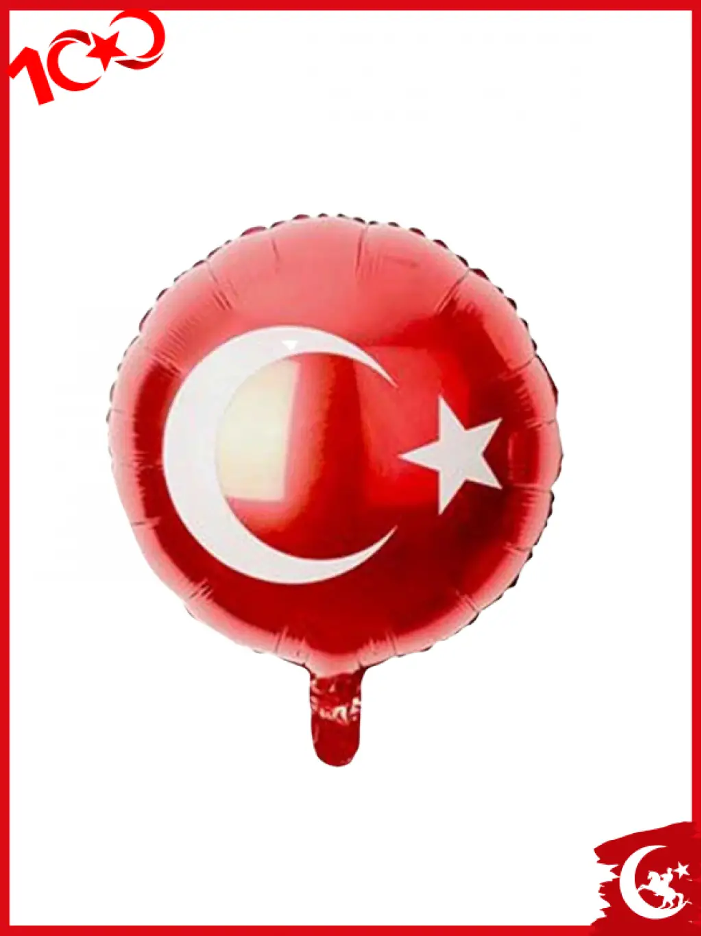 Türk Bayrağı Baskılı Kırmızı Renk Yuvarlak Folyo Helyum Balon 18'' 29 Ekim Süsleme Balonu