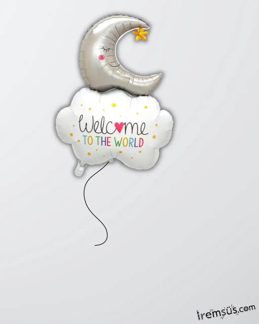 Bulut Şekilli Welcome World Folyo Balon Beyaz Renk 81*56 cm Yeni Doğum Süslemesi