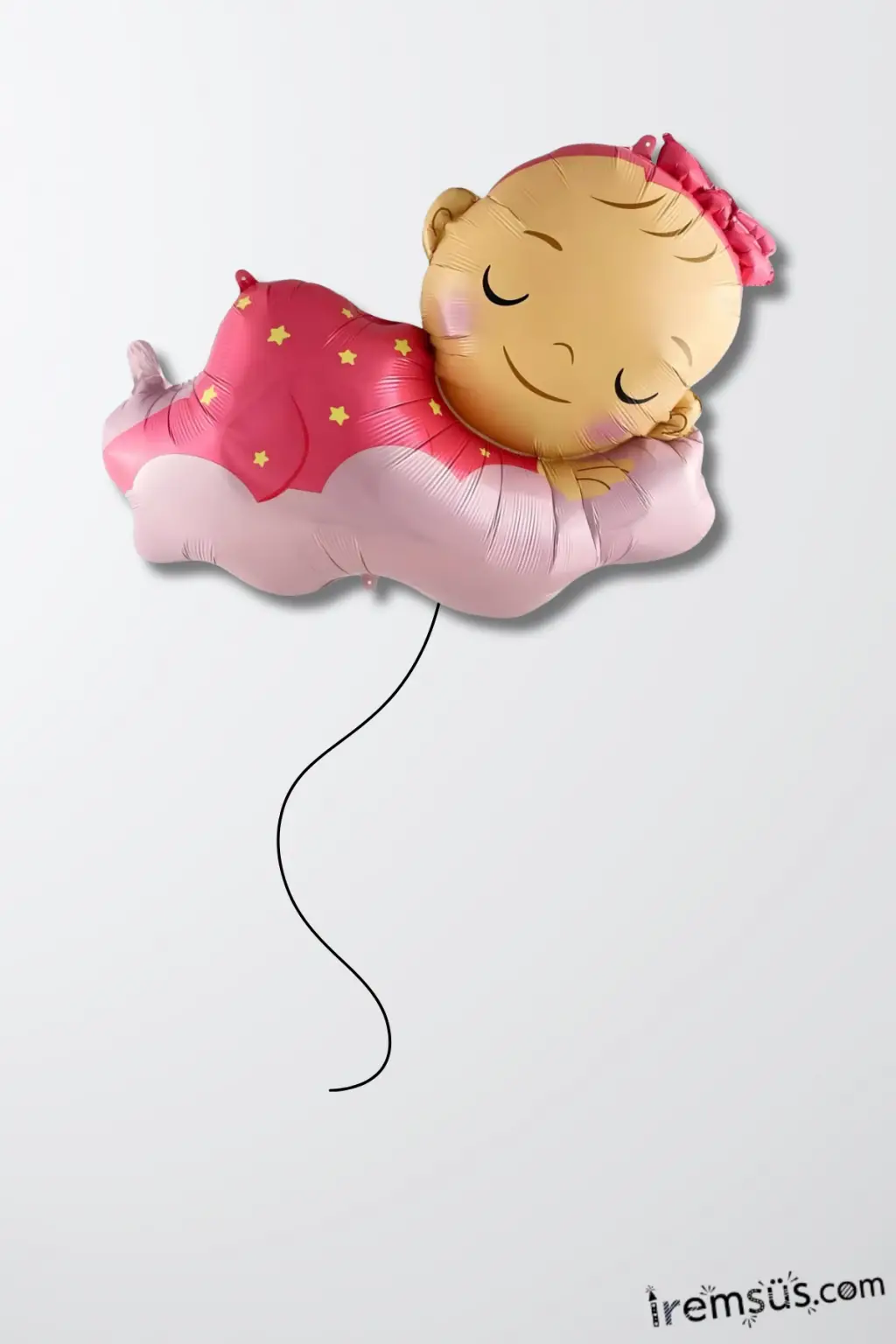 Bulut Şekilli Folyo Balon Pembe Renk 75*55 cm Kız Bebek Yeni Doğum Balon Süslemesi