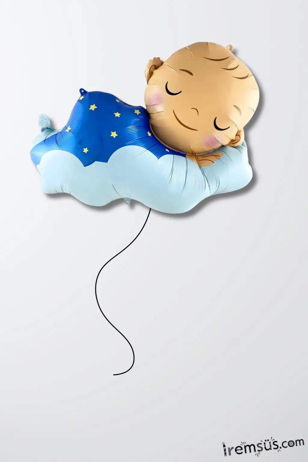 Uyuyan Bebek Figür Folyo Helyum Balon Mavi Renk 98 cm Bebek Figür Folyo Balon