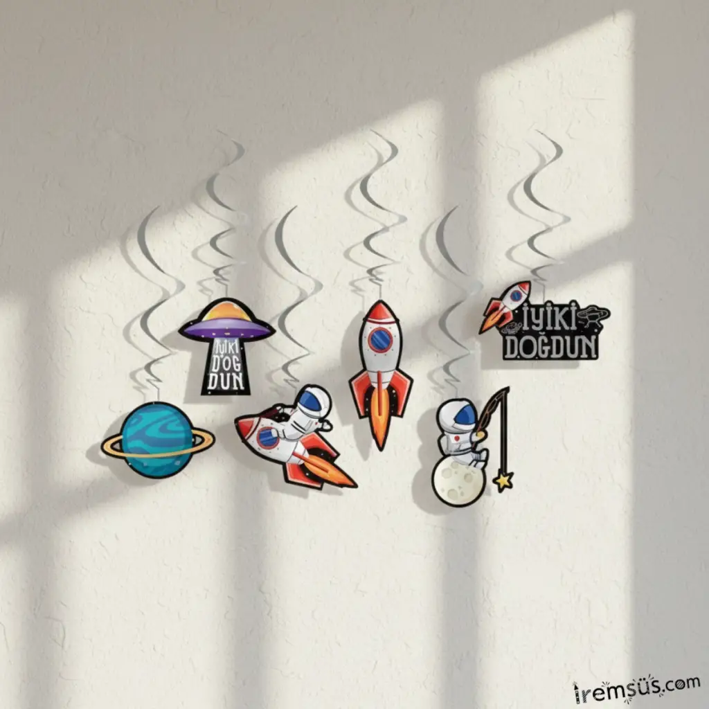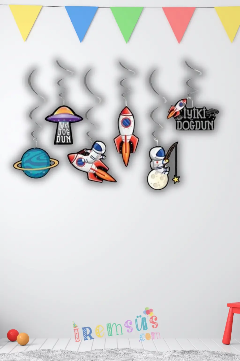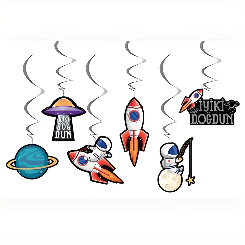 Uzay Konsept Doğum Günü Partisi Tavan Sarkıt Süs 6lı Uzay Tema Süslemesi
