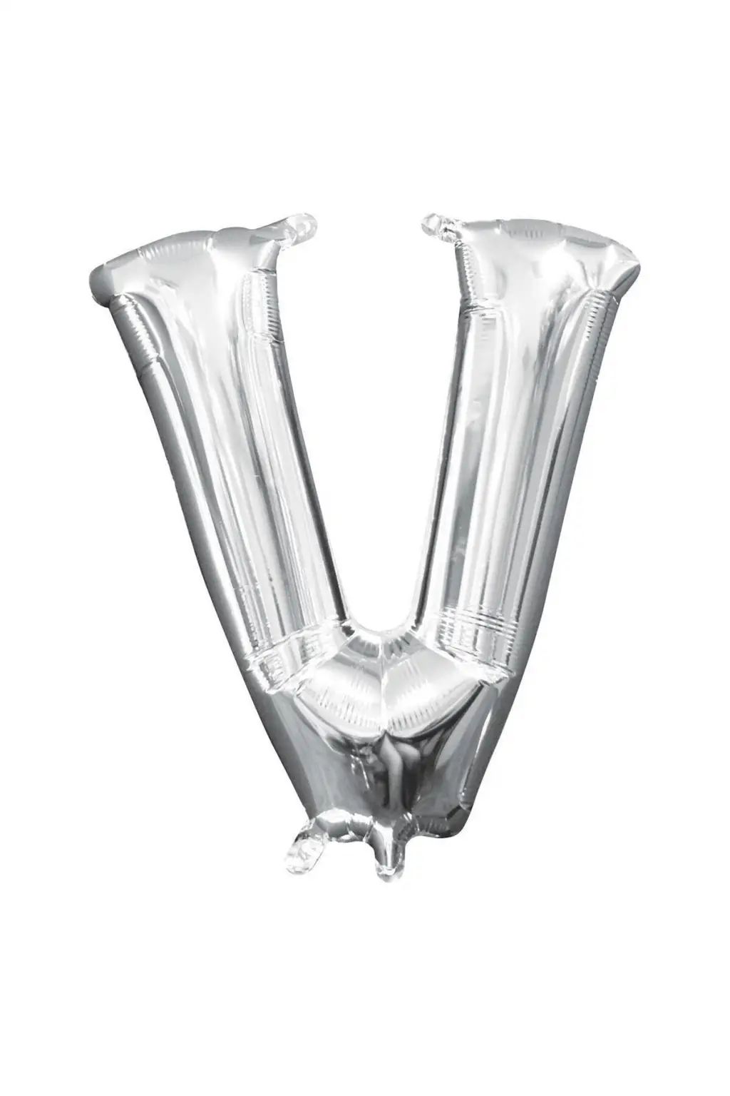V Harfi Doğum Günü Gümüş Renk Folyo Balon 16" 36 Cm V Harf Folyo Balon Silver Konsept