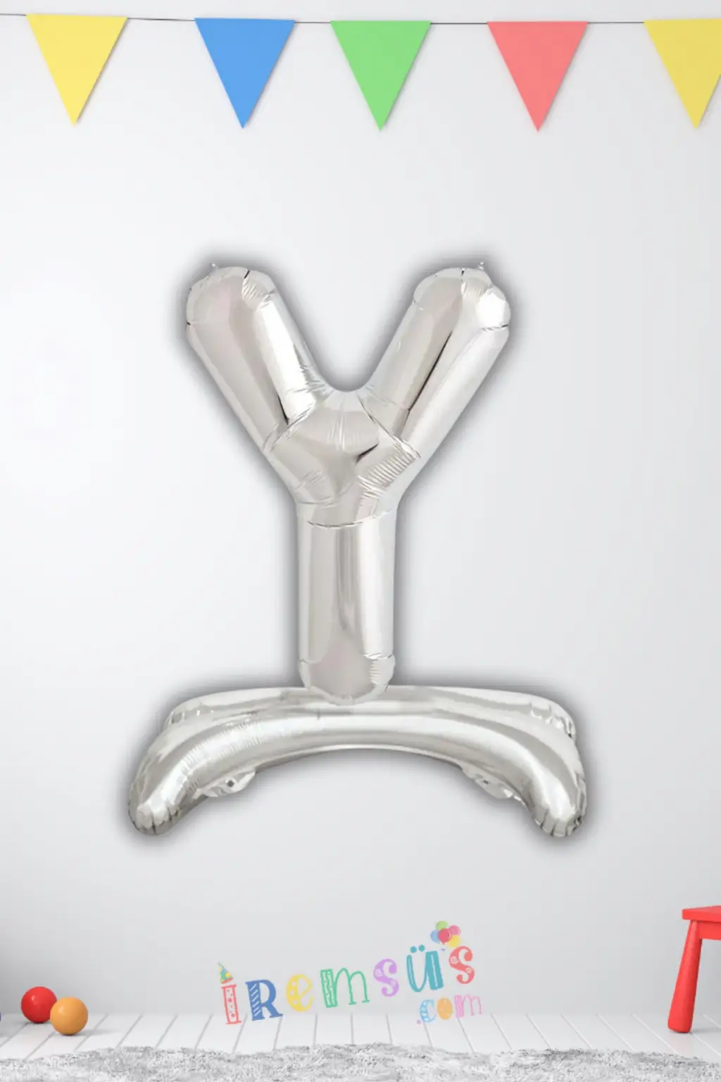 Y Harfi Ayaklı Folyo Balon Gümüş Renk 32"