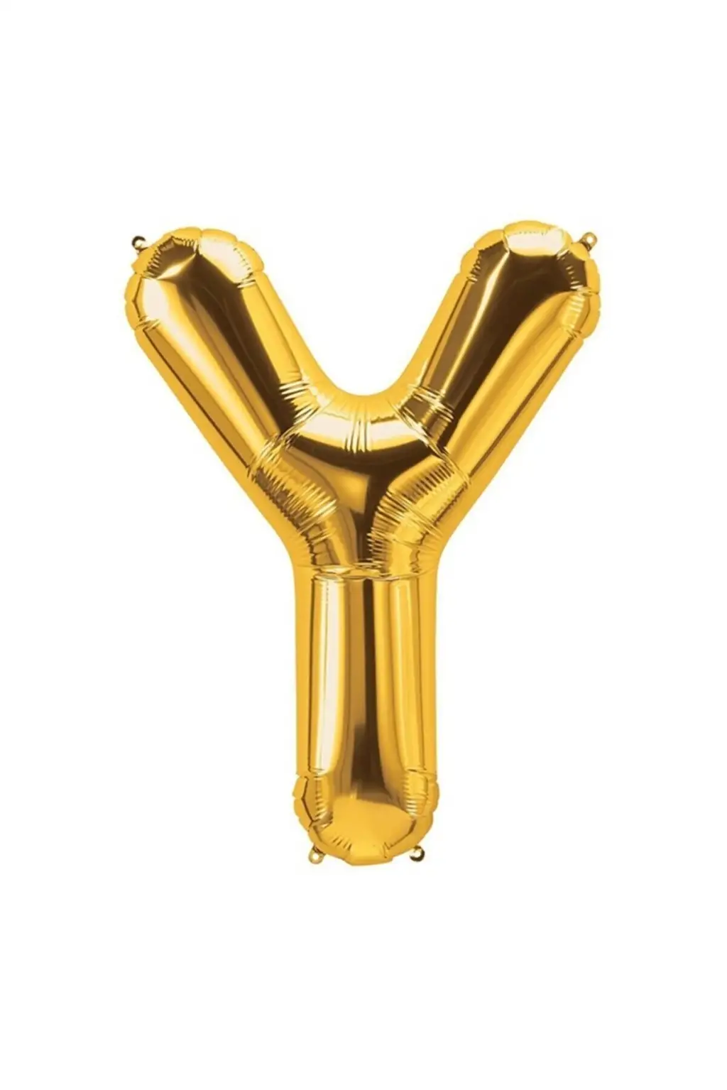 Y Harfi Doğum Günü Gold Renk Folyo Helyum Balon 34" 76 Cm Y Harf Folyo Balon Gold Konsept
