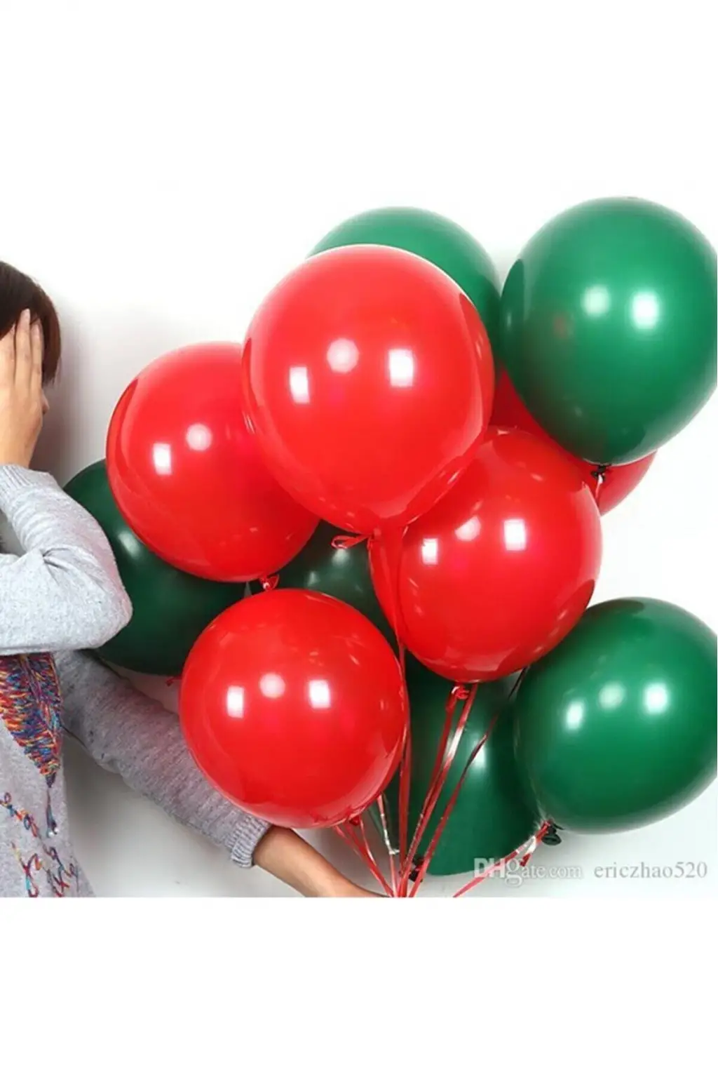 Kırmızı Yeşil Konsept Süsleme Helyum Uyumlu 10 Adet Balon Yeşil Kırmızı Konsept Süs
