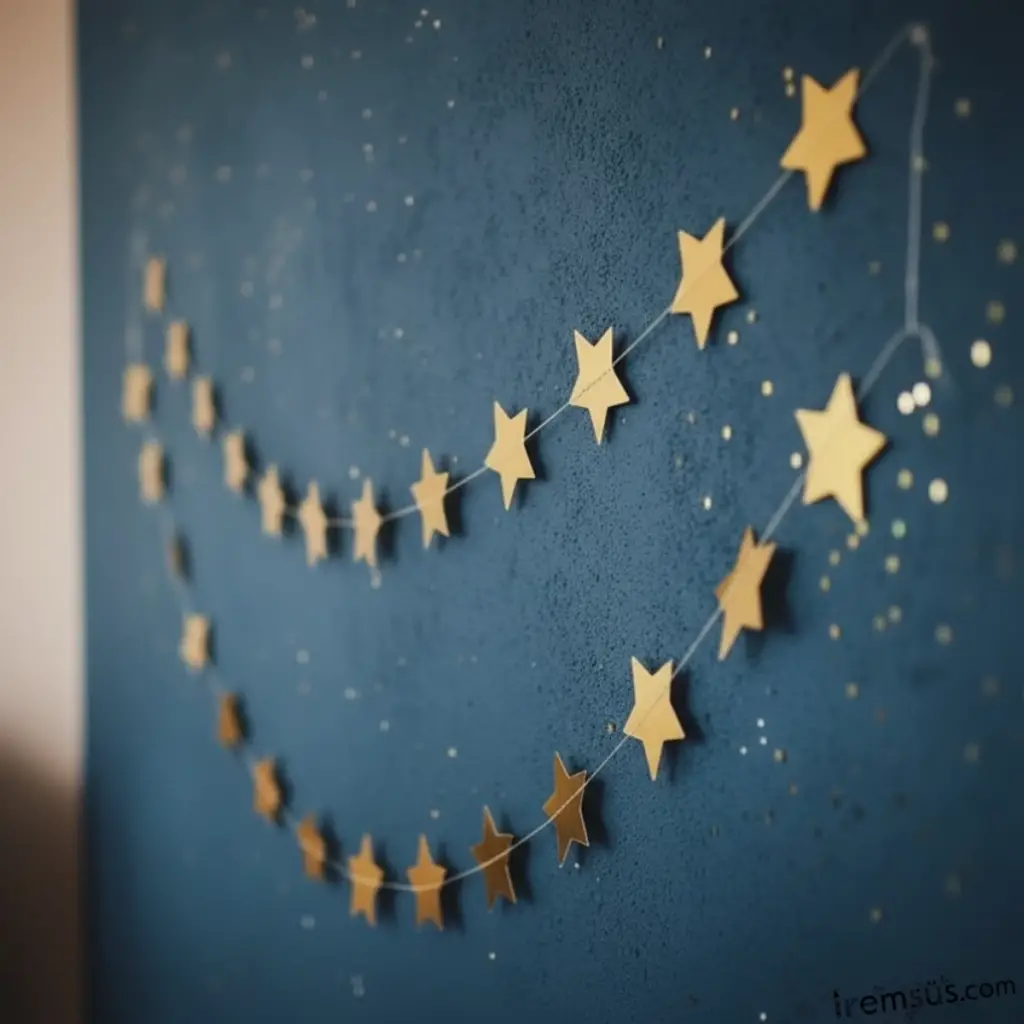 Yıldız Şeklinde Gold Renk Şerit Süsleme 3 mt Yıldız Şeklinde Parti Süslemesi