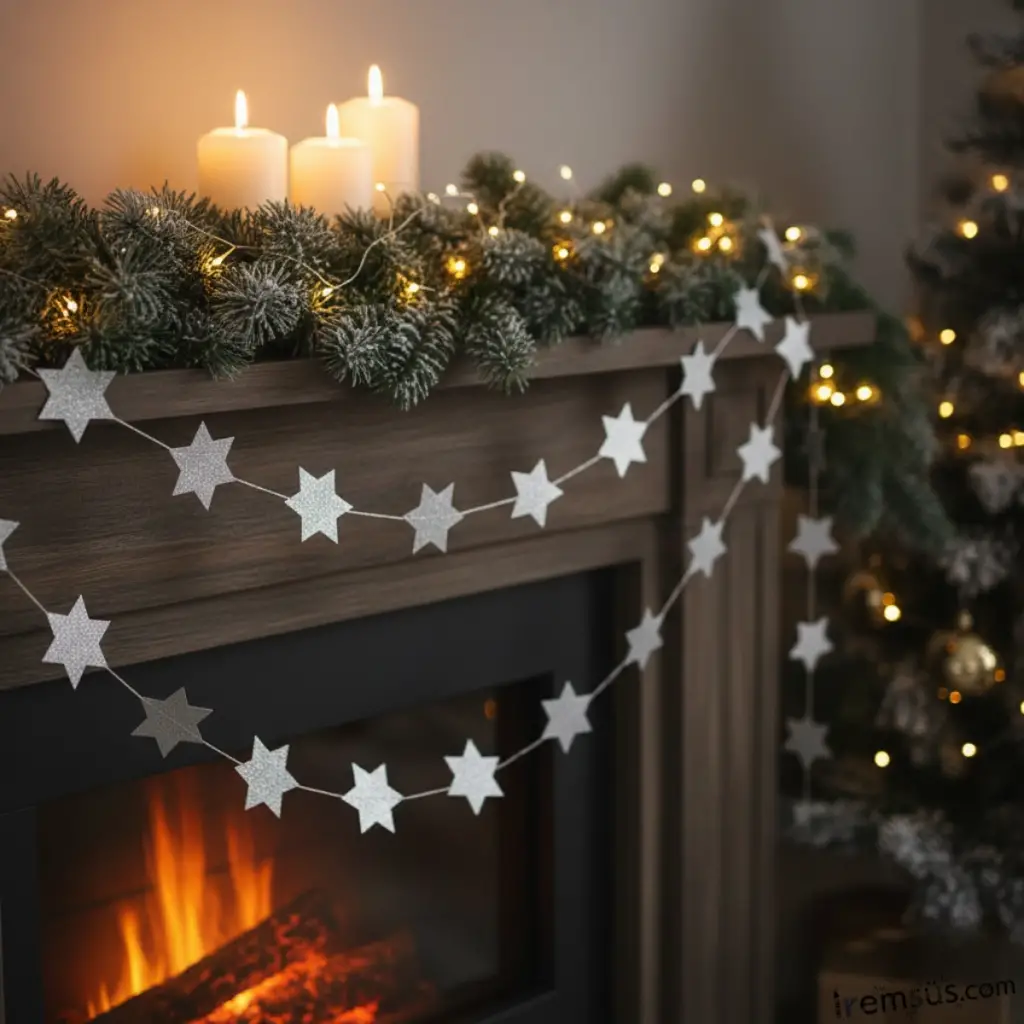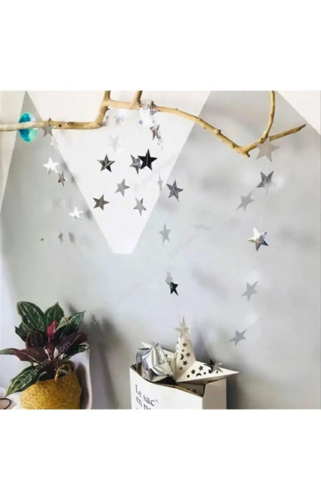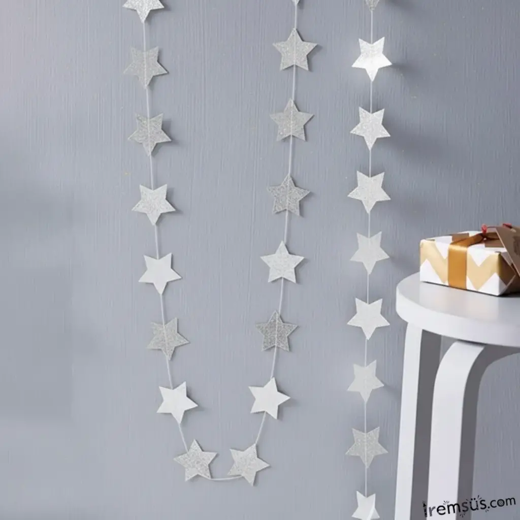 Yıldız Şeklinde Gümüş Renk Şerit Süsleme 3 mt Yıldız Şeklinde Parti Süslemesi
